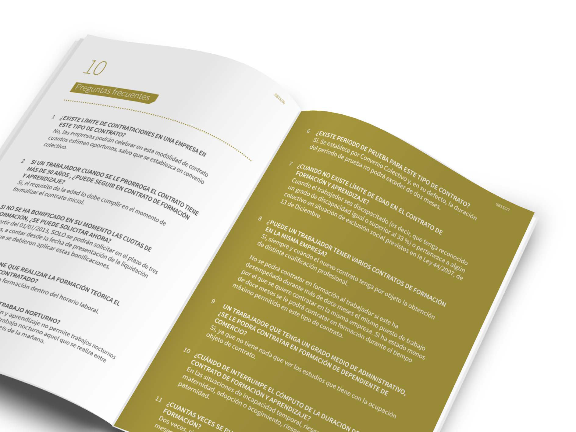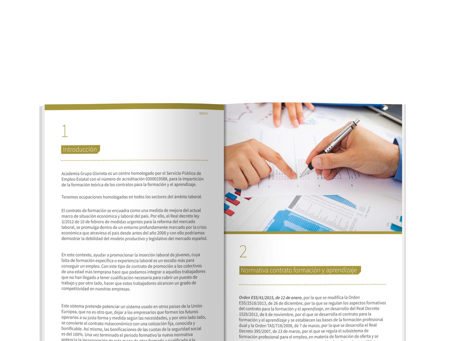 Guía básica para el contrato de formación y el aprendizaje que Grupo Glorieta ofrece a sus clientes. Un diseño sobrio y elegante.