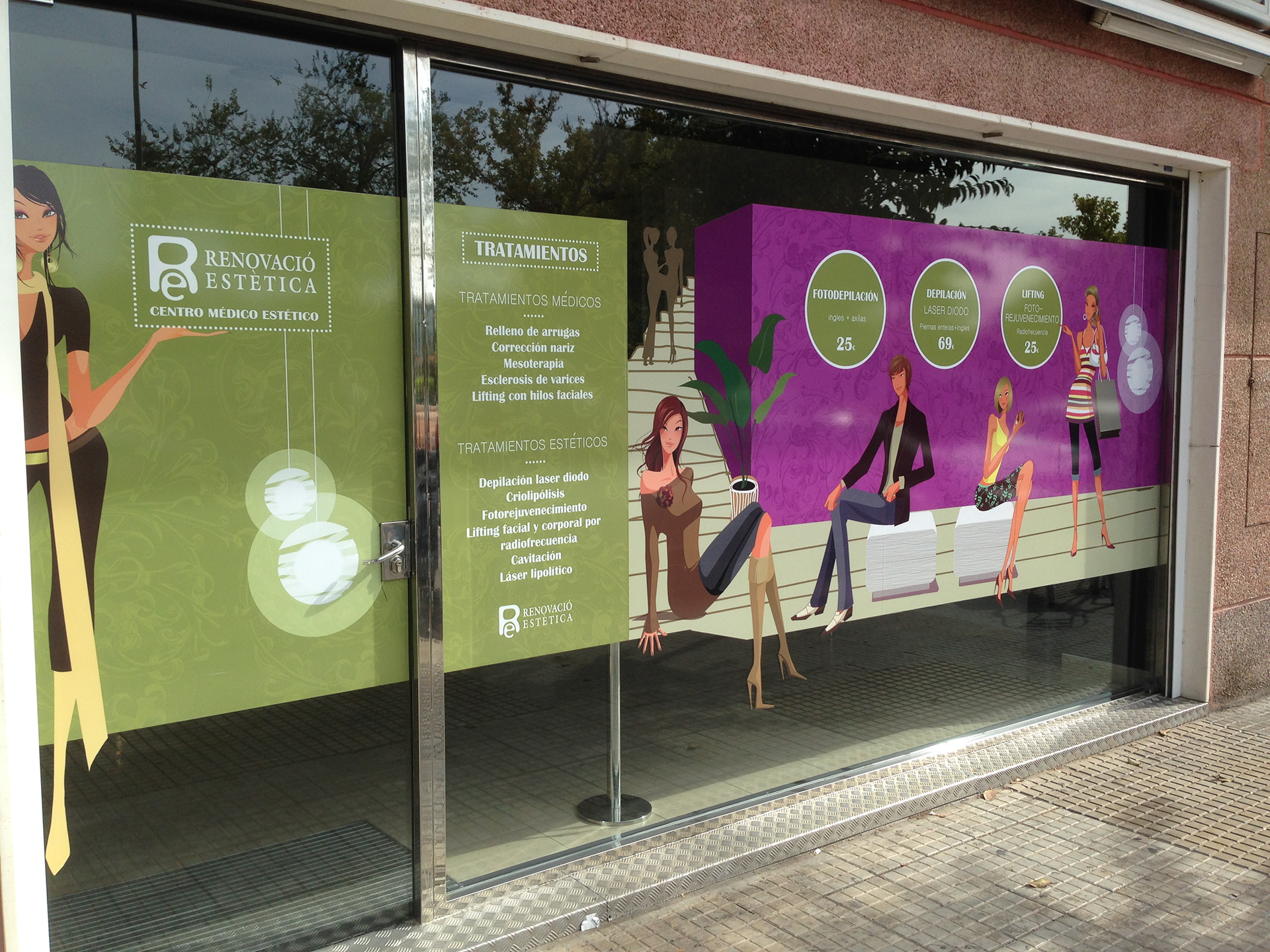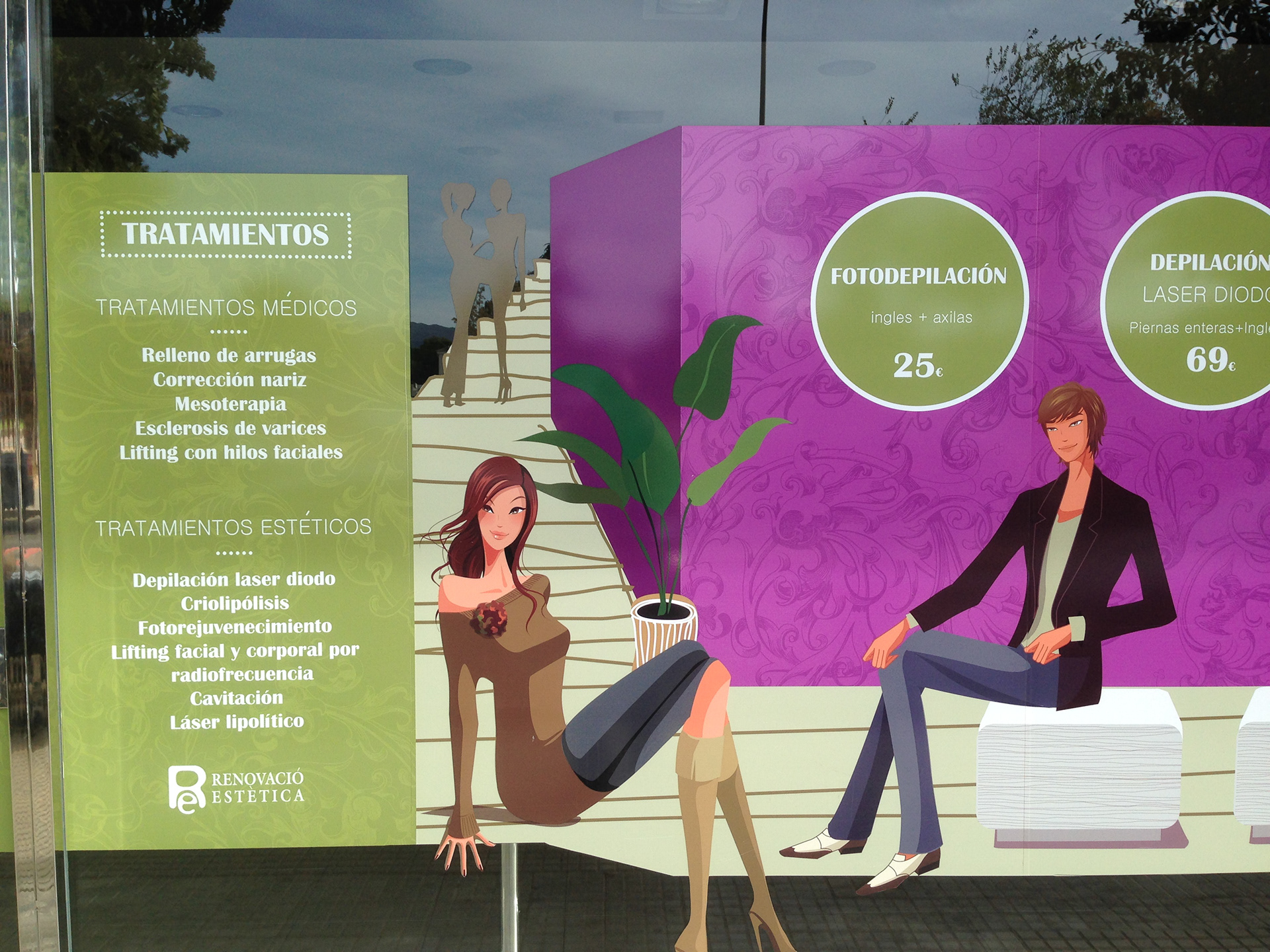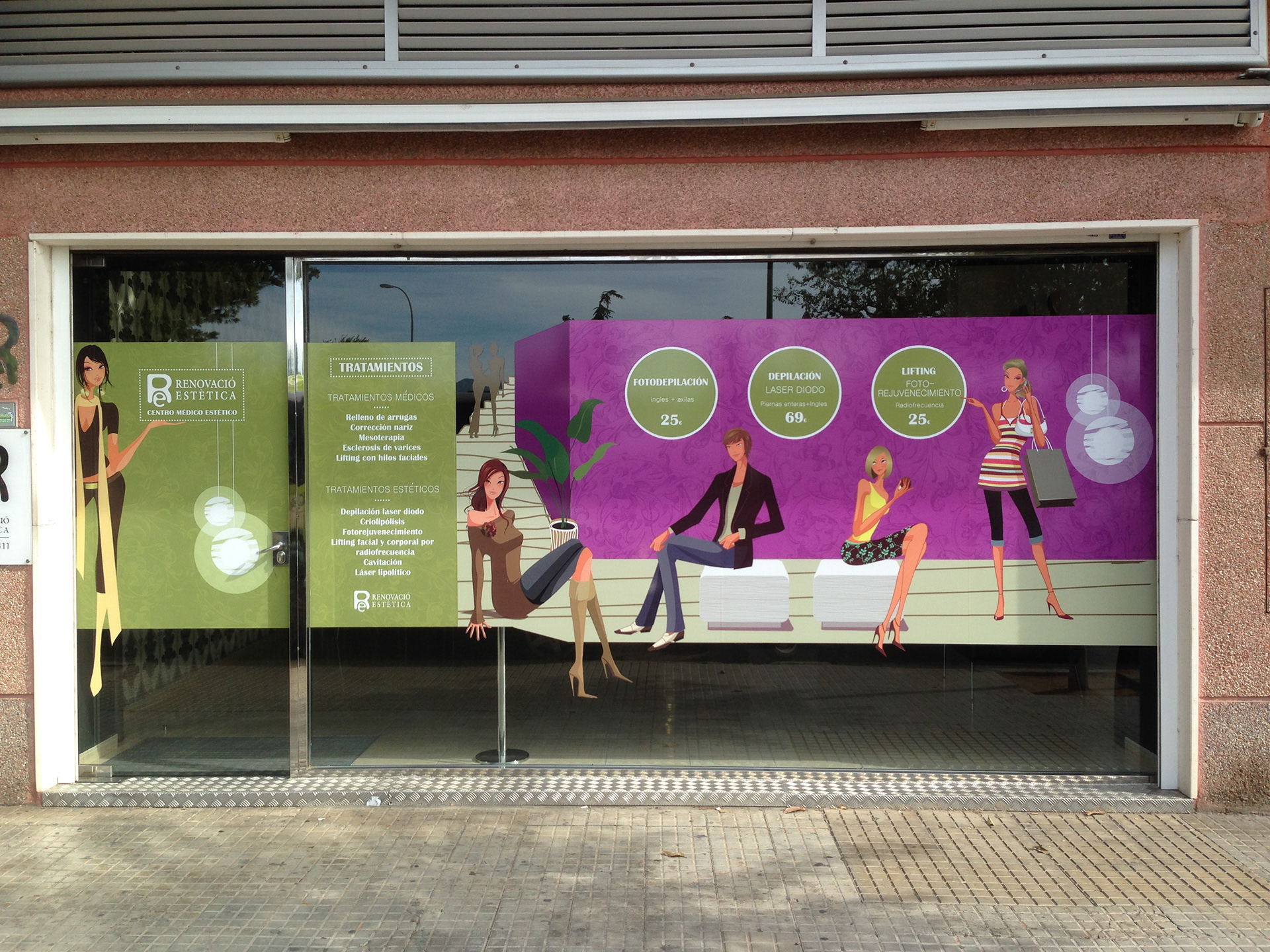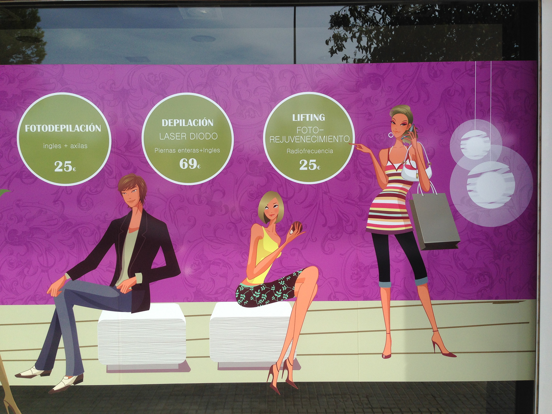 Un centro médico estético que ofrece belleza a sus clientes no puede perder la suya misma. El objetivo era mejorar el diseño exterior de la clínica y la mejor manera era representar en el exterior lo que ocurria en el interior. Un conjunto de personas, colores y formas muy llamativas que lo que pretende es captar la mirada de los viandantes.