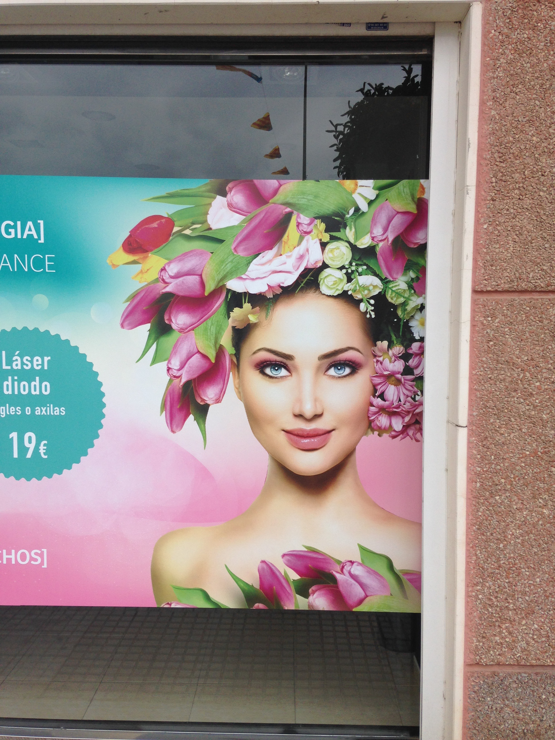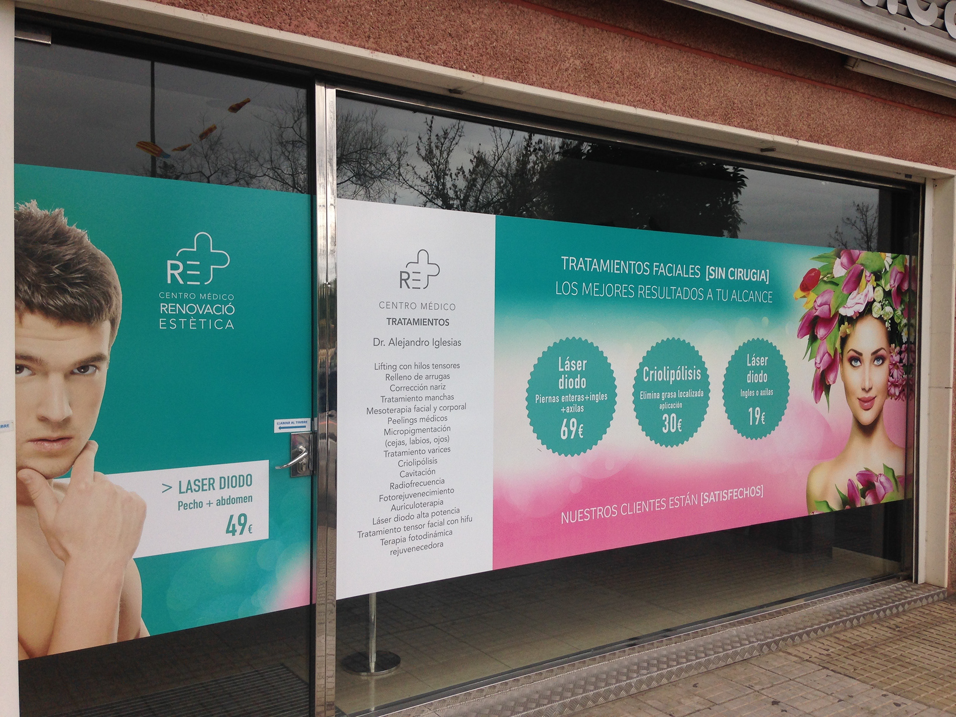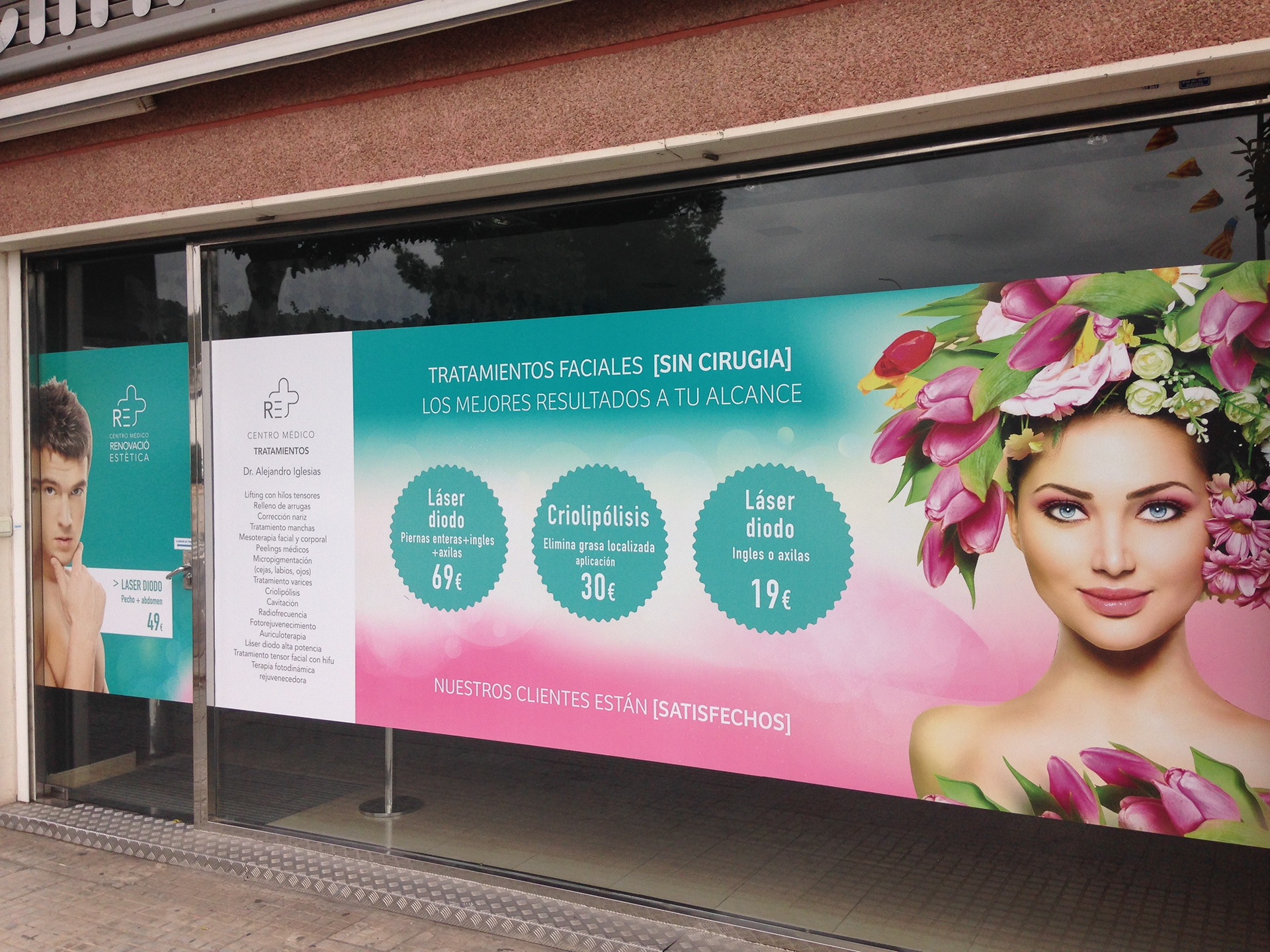 El color y los tulipanes marcan la llegada de la primavera. Un vinilo que con su diseño llamativo atrae la mirada del transeúnte. La primavera está viva en Renovació Estètica.